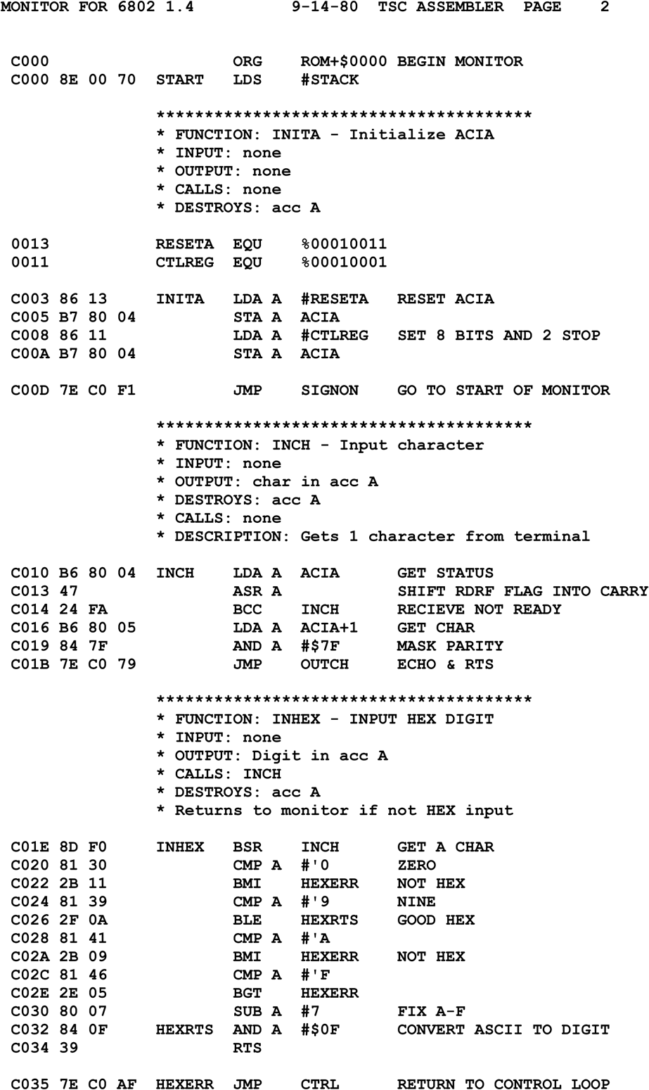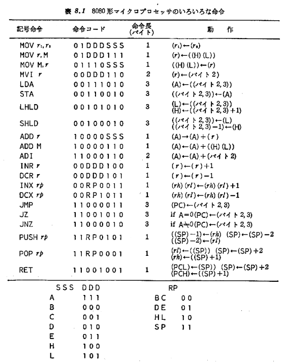 当時みなアセンブラと呼んでいましたので以下はそう呼びます。機械語は数字の羅列ですので少しでも分かりやすくするために個々の数字に記号を当てはめたものです。 例えば機械語の「86h 13h(16進数です)」は 「LDA A 0013h」(メモリの13h番地の値を Aレジスタへ読み込め)のように書いて意味を分かりやすくします。 この記号から数字への変換は通常コンピュータ自身でおこなうのですが、初期のころ使っていたコンピュータにはその能力がなく人手で行いました。 変換はほぼ一対一の単純作業ですがけっこう面倒で根気のいる作業でした。 アセンブラはコンピュータへの命令そのものですので動作がかなり細かく人の感覚とはかけ離れているので習得するには結構な労力を要します。 さらにメーカーやコンピュータによって構造、命令や書き方が大きく異なっているので複数のアセンブラを取得するのは容易ではありませんでした。 しかし無駄のない最適なプログラムを作ることができますので CPUパワーや メインメモリの少ない8ビットCPU時代には大活躍しました。